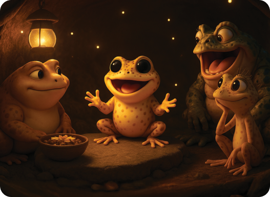 A curious and kind-hearted little toad who believes every day holds an adventure. Ribbitz learns that true bravery isn’t about being fearless it’s about moving forward with trust.